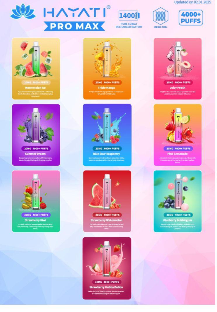 Step into the future of vaping with the HAYATI Pro Max 4000 Puffs Disposable Vape – a sleek, rechargeable device crafted for both beginner and experienced vapers. Engineered with advanced mesh coil technology, it delivers smooth vapor, bold flavors, and consistent performance from the very first puff to the last.